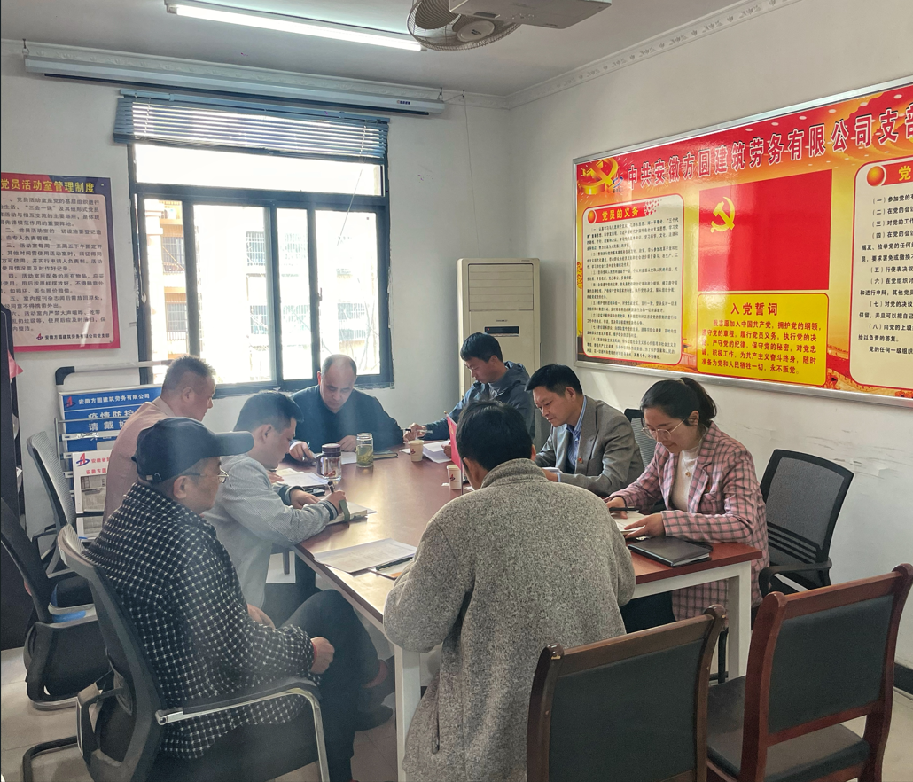 3月13日,方圓勞務公司黨支部召開2022年度組織生活會,公司黨委委員、副總經理葉和永、黨委工作部副主任李勝瀾等到會指導。方圓勞務公司全體黨員參加會議,會議由支委委員楊飛主持。