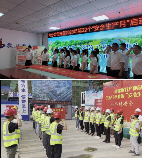 6月1日,第六分公司組織在建項目部舉行“安全生產月”活動啟動儀式。通過安全宣誓、安全簽名、懸掛條幅、展牌、觀看安全警示片等形式,營造“安全生產月”活動氛圍。