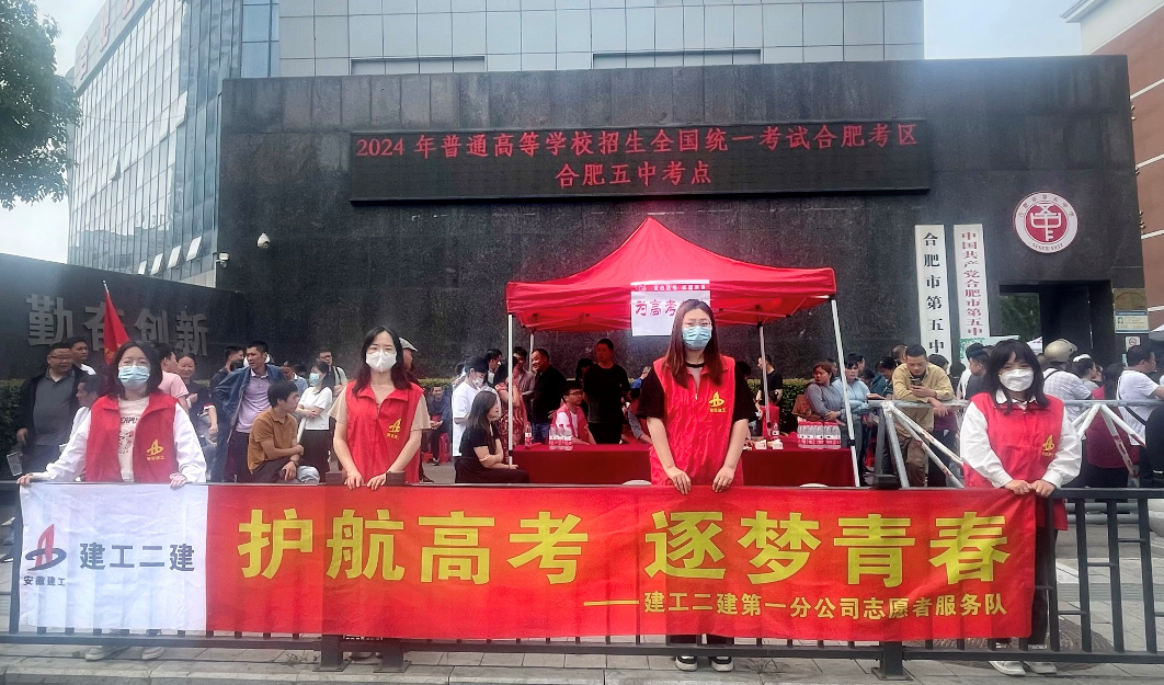 6月7日上午,建工二建團委分別在合肥市第五中學(長江校區)、合肥三十八中(和平路校區)高考考點組織團員青年開展愛心助力高考志愿服務活動。