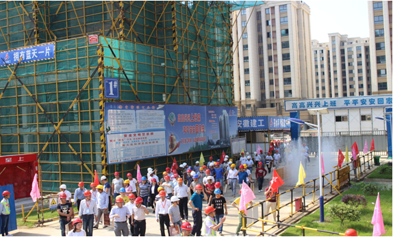 5月27日上午,由宿松縣住建局、安徽二建公司、安建地產宿松有限公司聯合舉辦的“建筑施工安全質量標準化現場觀摩會”在安建·龍溪觀邸項目舉行。宿松縣住建局局長余勁松、副局長劉勝新、二建公司安全總監曹建及宿松縣建筑行業單位近200人參加了此次觀摩會,重點對該項目質量安全標準化工地、綠色文明施工、科學化施工建造、人性化服務等方面進行了全方位的觀摩學習。