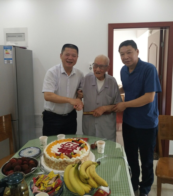 6月15日上午,公司黨委書記劉賢奇在工會主席李林、后勤綜合服務部支部書記、主管離休工作人員的陪同下,來到居住在高新區(qū)的離休老干部百歲老人李輝家中,送上生日壽桃蛋糕、慰問金和代表公司黨委對老人的生日祝福,祝愿老人壽比南山,福如東海。李輝,男,1919年7月1日出生,江蘇鹽城人,1945年4月1日參加新四軍抗日隊伍,1946年4月加入中國共產黨,出生入死63載,槍林彈雨,對黨忠誠,積極工作,勤勤懇懇,對企業(yè)發(fā)展建設作出應有貢獻。如今老人精神矍鑠,生活安逸,心情愉悅。劉賢奇一邊與老人真摯地交談,了解老人的身體健康狀況、長壽秘籍;一邊與老人分享中國改革開放翻天覆的變化,安徽二建66載的風雨歷程,目前企業(yè)已走向正常發(fā)展軌道,企業(yè)正處于轉型發(fā)展的關鍵時期,發(fā)展前景越來越好,希望老人事事順心,天天快樂,益壽延年。老人感謝劉書記和離休辦同志在自己百歲生日時給予的祝福,感謝公司黨委關心呵護,表示要堅定信念,永遠聽黨話,跟黨走,祝愿企業(yè)再創(chuàng)新的輝煌。