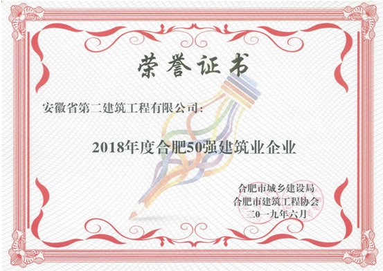 公司榮獲“2018年度合肥市50強建筑業企業”等多項榮譽