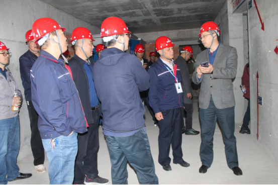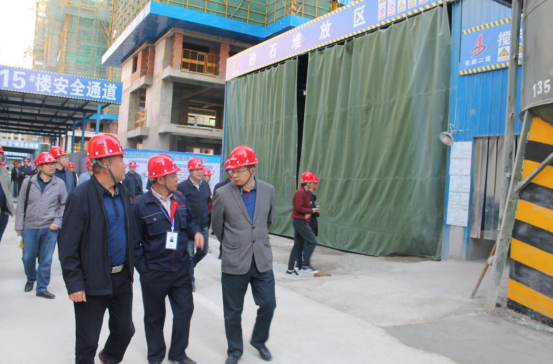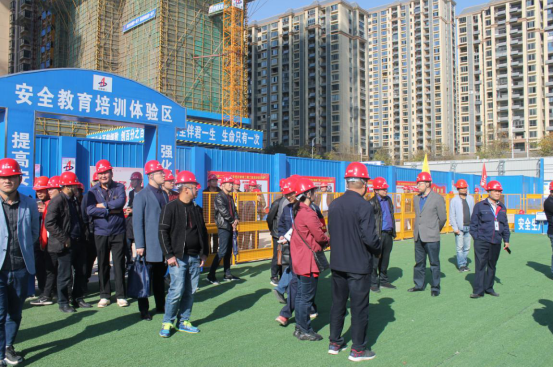 項目黨支部書記、生產經理鄭章樂從項目概況、黨建工作的開展、安全文明施工、質量管控和進度等方面向觀摩人員介紹。觀摩團一行參觀了安全教育培訓體驗區、建設高層內部區、砂石堆放區、雨水系統收集圖。