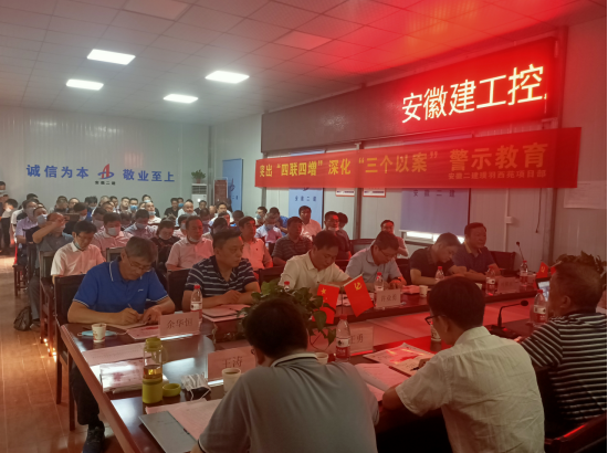5月26日上午,建工控股黨委委員、紀委書記宋志華等一行,深入安徽二建合肥麗豐璞羽西苑項目開展“三個以案”警示教育大宣講、大調研、大督查活動,安徽二建領導班子成員及中層干部參加。
