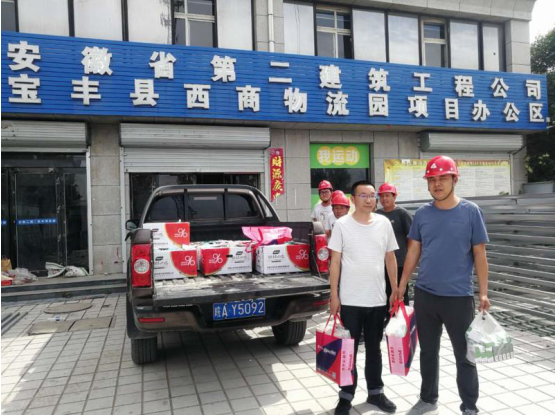 黃盱一行給項目員工送去慰問和關懷,準備了毛巾、風油精、十滴水、西瓜等防暑降溫用品,囑咐大家要合理安排工作時間,在做好工作的同時,加強自身防護。