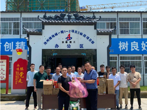 仇多維一行為一線職工送上綠豆、人丹、茶葉、肥皂、洗手液等防暑降溫及消毒物品,叮囑項目經理在做好疫情防控常態化工作的同時,合理安排高溫工作時間,克服惡劣天氣影響,加強防暑降溫知識的宣傳教育,確保夏季施工安全。