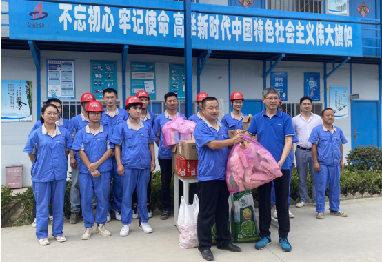 731日下午,烈日炎炎,暑氣蒸人,公司副總經理余華恒、工會女工主任王俊一行赴文一·塘溪津門、文一·春風里項目送清涼,看望和慰問奮戰在施工一線項目管理人員。