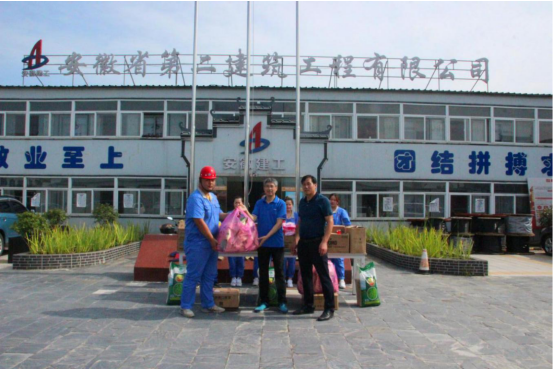 余華恒一線職工送來綠豆、白糖、毛巾、洗發水、沐浴液、十滴水、仁丹等防暑降溫用品,并細致的詢問了工程進度、施工質量、安全文明等方面情況,同時要求項目管理人員,一定要做好高溫季節施工防暑工作,切實將安全放在首位,確保安全生產。