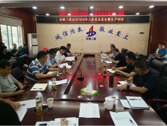 近日,安徽二建公司召開二季度安委會暨生產(chǎn)例會。公司安委會全體成員及機(jī)關(guān)各部門負(fù)責(zé)人參加會議。副總經(jīng)理葉和永主持會議。