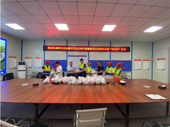 8月11日下午,蚌埠市高新區(qū)管委會韓永林,高新投資集團、高新建發(fā)公司總經(jīng)理陳輝蒞臨安徽二建蚌埠山香安置房EPC項目開展“送清涼”活動,為項目送來了藿香正氣水、綠豆、菊花茶、花露水等防暑降溫物品。韓永林詢問了生產(chǎn)進度、質(zhì)量安全施工以及高溫天氣項目部采取的防暑降溫措施等方面情況,同時要求,一定要確保高溫天氣下現(xiàn)場作業(yè)人員的安全,切實提高對一線作業(yè)職工的關(guān)心、關(guān)懷,避免 “非戰(zhàn)斗減員”情況發(fā)生,把安全放在首位,做到安全文明施工。