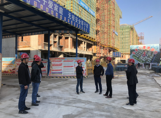 11月11日,建工控股黨委工作部副部長楊光兵一行蒞臨安徽二建池州綠地城一期項目檢查指導工作,公司黨委工作部主任施用宏隨行