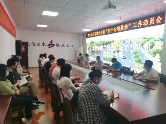 會上傳達學習了集團及公司“違規決策、違規投資、違規擔保、違規招投標”專項整治工作方案。制定了分公司“四個專項整治”工作方案,成立了分公司“四個專項整治”工作領導小組,并對集中開展“四個專項整治”工作進行了動員部署。