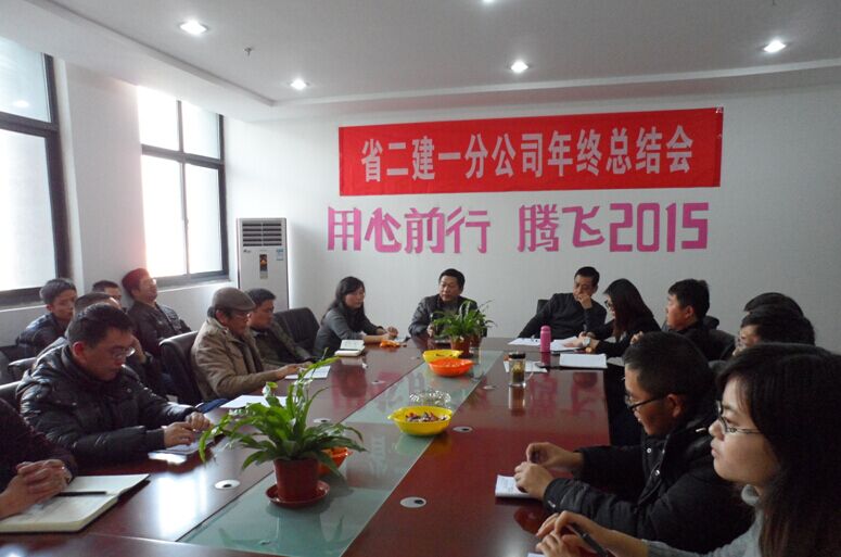 2014年12月24日下午,一分公司召開2014年度工作總結大會,會議的主題是《用心前行,騰飛2015》,分公司機關及項目部管理人員參加了會議。機關各科室對本年度工作做了客觀全面、詳細的匯報,對2015年主要工作進行了展望。