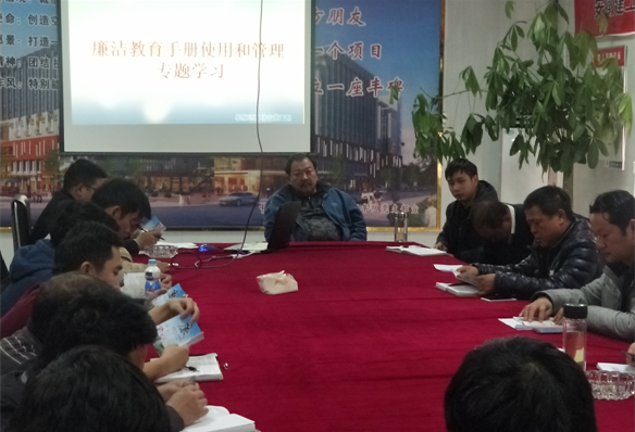 12月11日上午,阜陽項目聯合黨支部在阜陽大學城紅街項目部開展了廉潔教育手冊學習專題會。