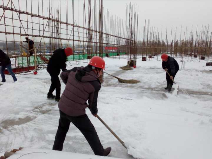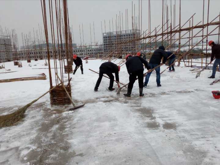 突降大雪,氣溫驟降,給正在加緊施工拼搶工期的太和標準工業廠房項目部帶來了不小的阻力。為保證來之不易的大干場面不受影響,針對天氣變化,項目部及時調整施工方案,強化現場安全管理,確保現場安全受控。