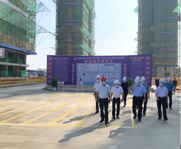 覃衛國一行察看了項目施工現場,認真聽取了項目經理徐良對項目工程概況、現場安全文明施工及疫情防控工作的詳細匯報。他對現場安全管控及疫情防控工作給予了充分肯定,并提出要進一步強化落實企業主體責任和部門監管責任,加強信息技術推廣應用與安全監管創新,有效提升監管效能,筑牢安全生產和疫情防控堅強防線。