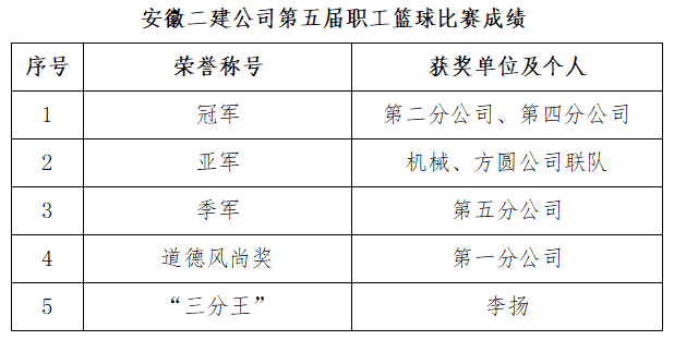 安徽二建公司第五屆職工籃球賽精彩閉幕