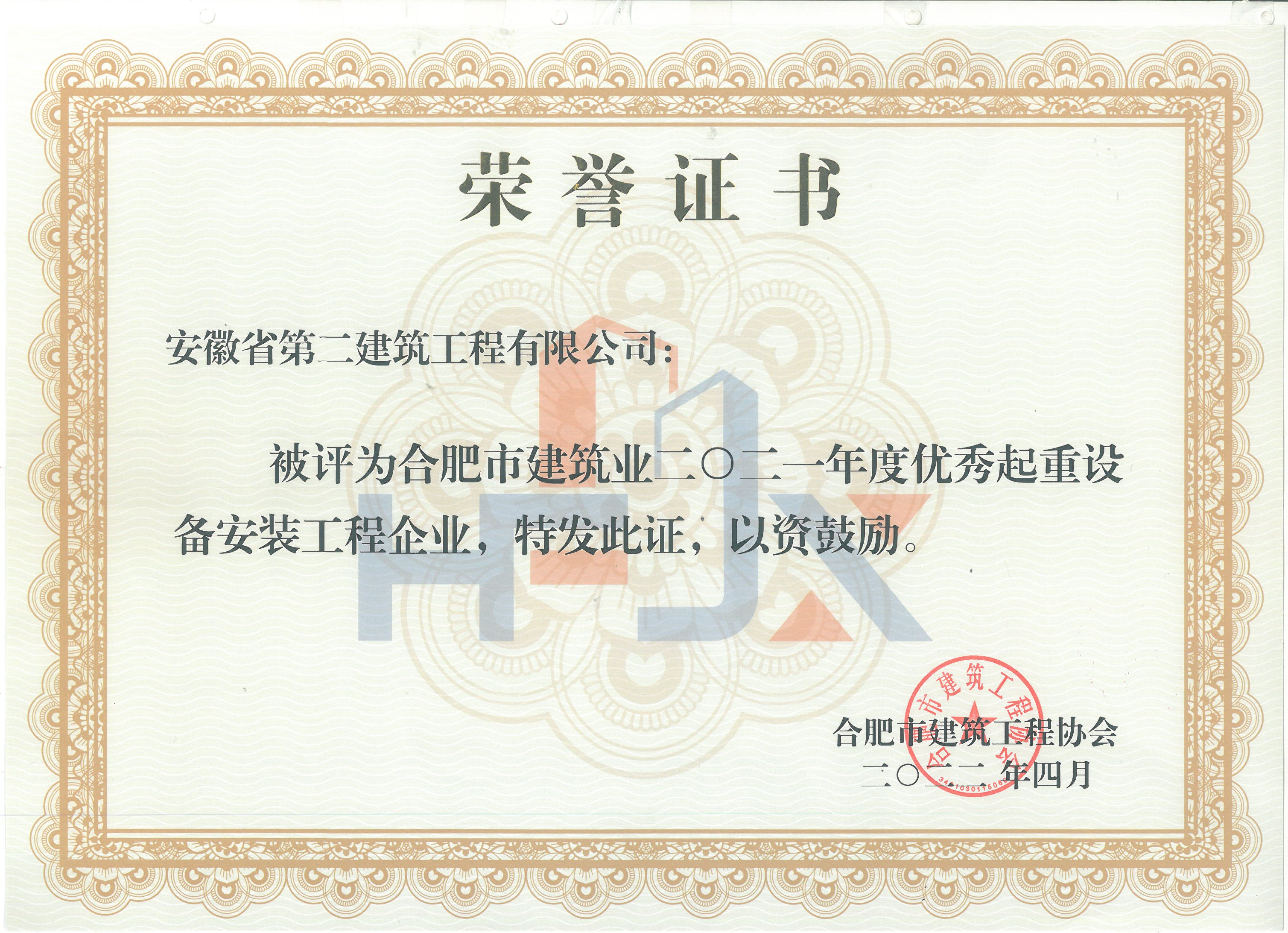 合肥市建筑業2021年度優秀施工起重安裝工程專業承包企業